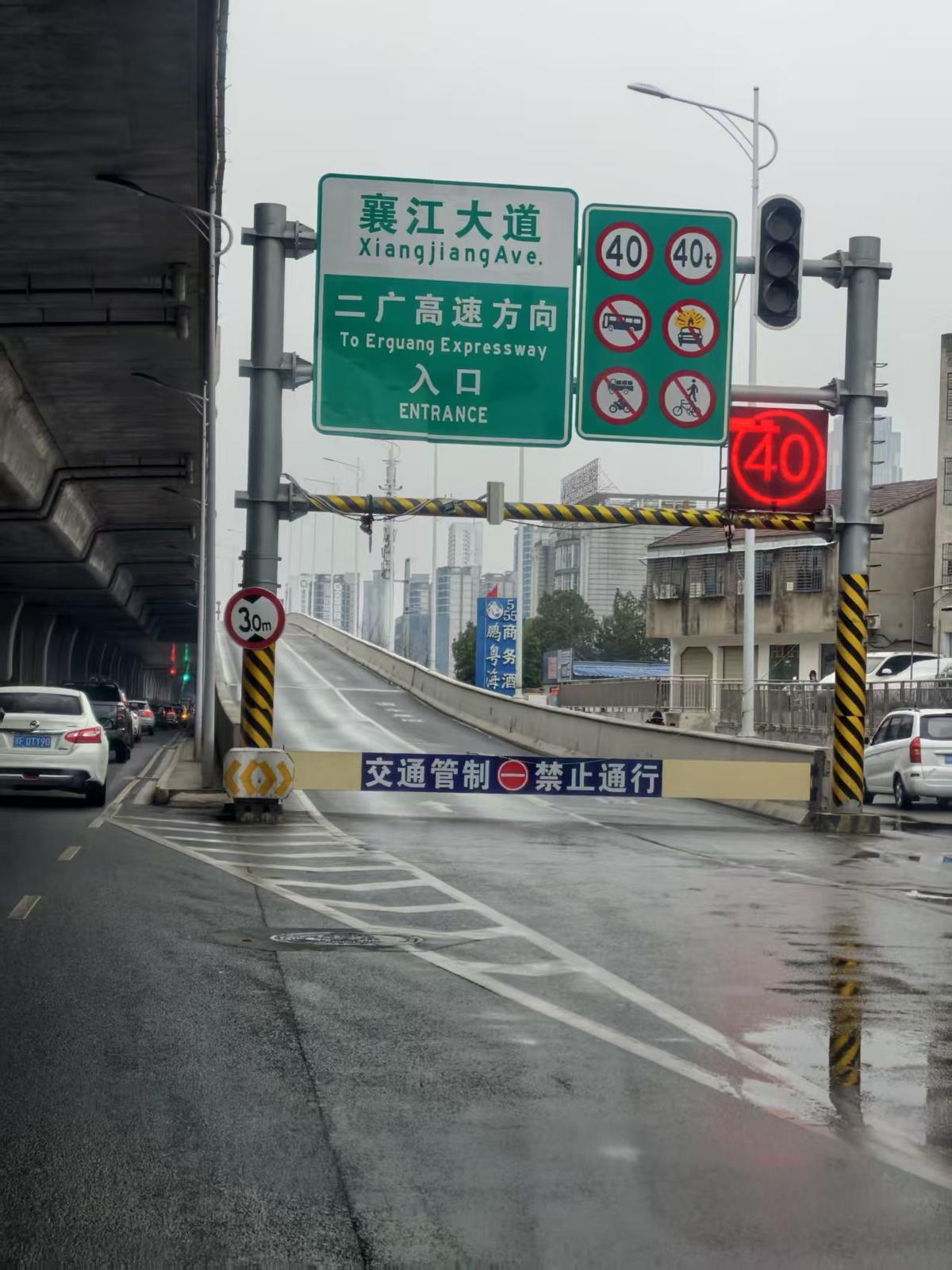 襄阳快速环线实行临时交通管制,随着冷空气到来,卧龙大道、大力大道、富康大道、襄江大道26个上行匝道口实行交通管制。