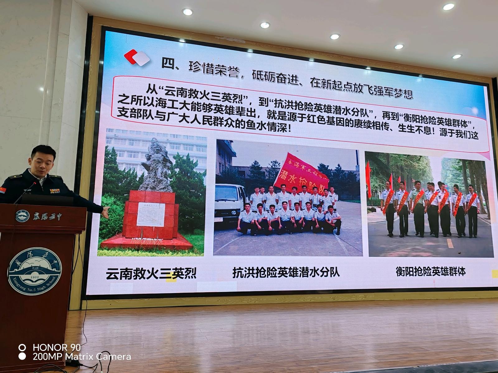 此前,全军21所军队院校走进襄阳五中开展国防教育巡讲,点燃了学子们的报国热情。在高一选科阶段,700余名学生主动选择国防志愿,占比达三分之一,为实验班创办奠定了坚实基础。仪式上,全国道德模范官东作英雄事迹报告,用榜样力量厚植学生爱国情怀。