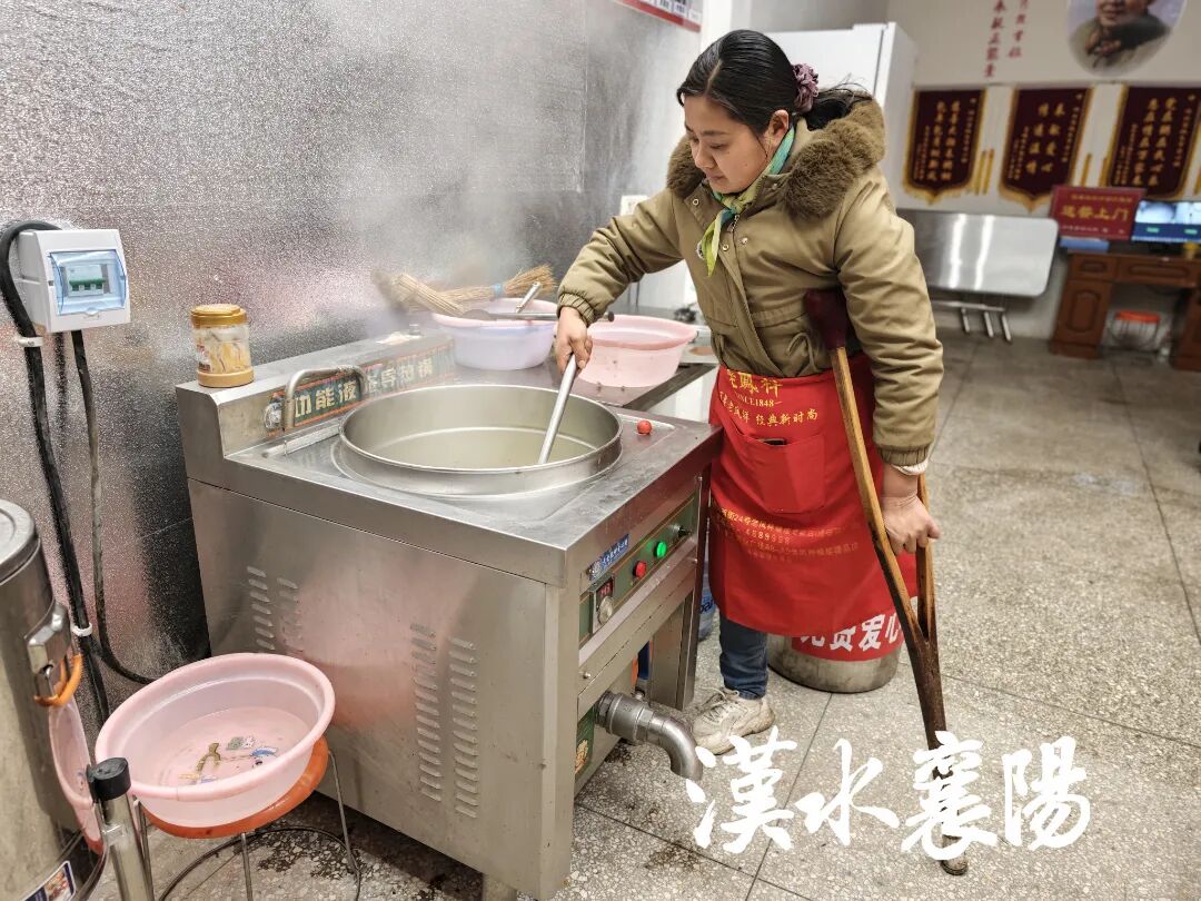 “换了灯、安了空调,亮堂多了,也暖和了……”方丹一手拄着单拐,一手熟练地操作着崭新的保温煮粥灶,锅里翻腾着的是一锅腊八粥。