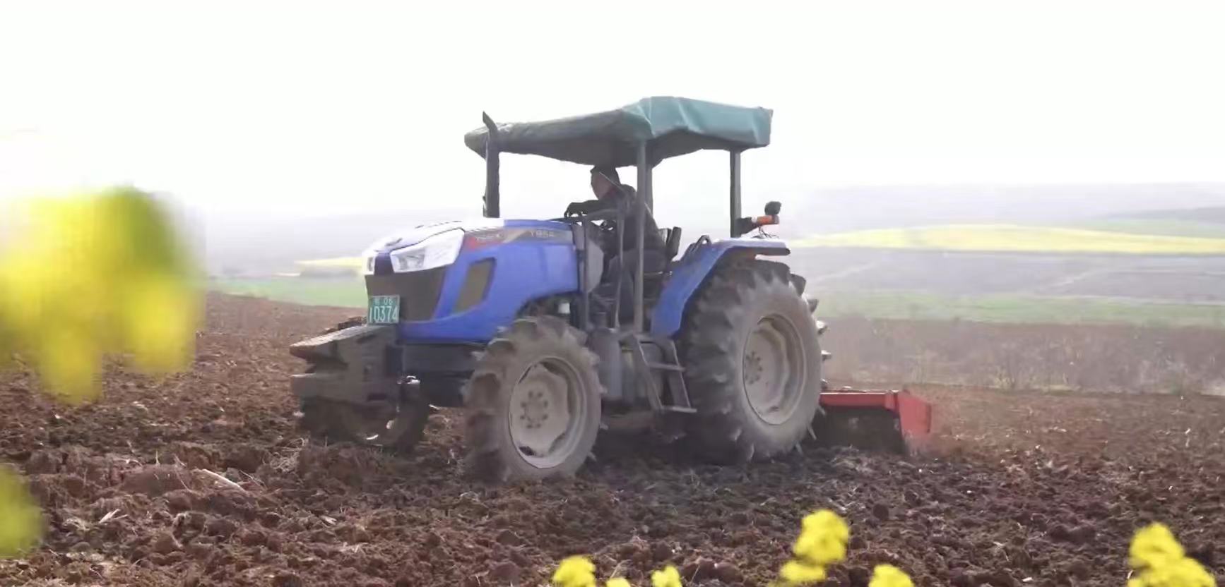 宜城市金龙合作社负责人别广全说:“我们的大型农机安装有北斗导航,耕得直,旋的碎,种田也变得轻松,我们的大型农机有劲,像这种坡田,农户都喜欢找我们旋耕。”