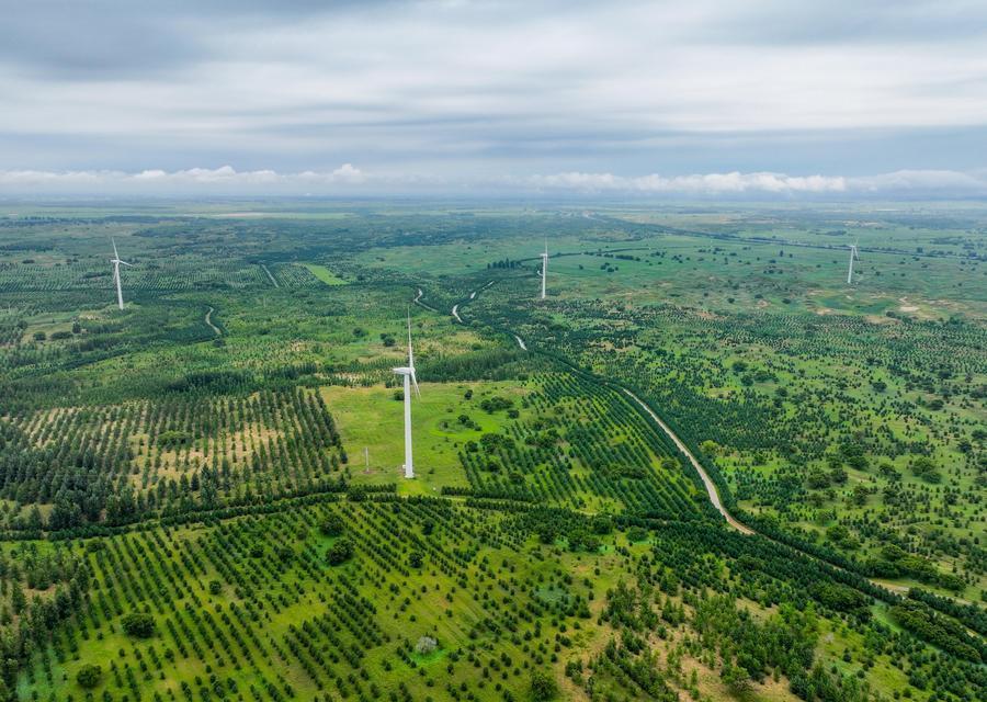 △2024年8月3日,在内蒙古通辽科尔沁左翼后旗,科尔沁沙地“双百万亩”综合治理工程努古斯台项目区内绿意盎然。